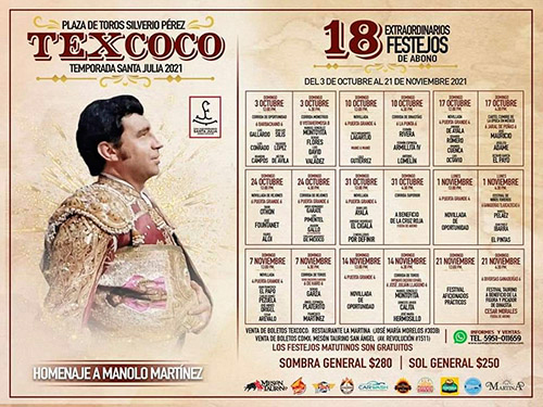 Un total de 18 festejos comprendidos entre el domingo 3 de octubre y el domingo 21 de noviembre.