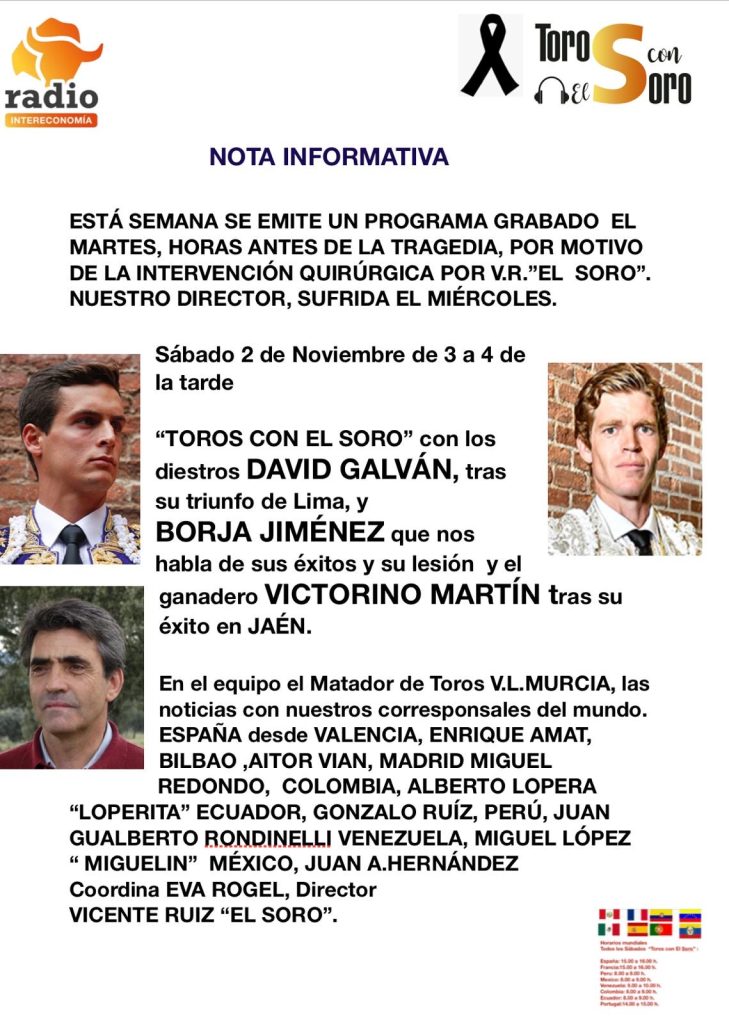 Este semana se emite un programa grabado el martes, horas antes de la tragedia, con motivo además de la operación...