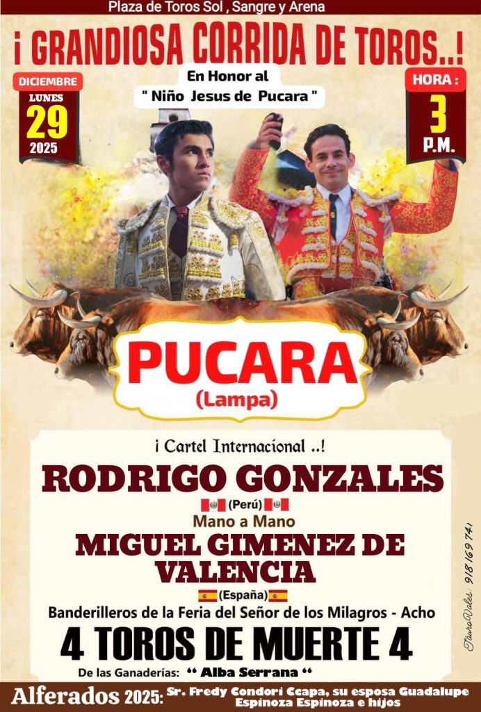 El matador de toros valenciano Miguel Giménez continúa su campaña por ruedos peruanos. Y así, el día 29 de diciembre...