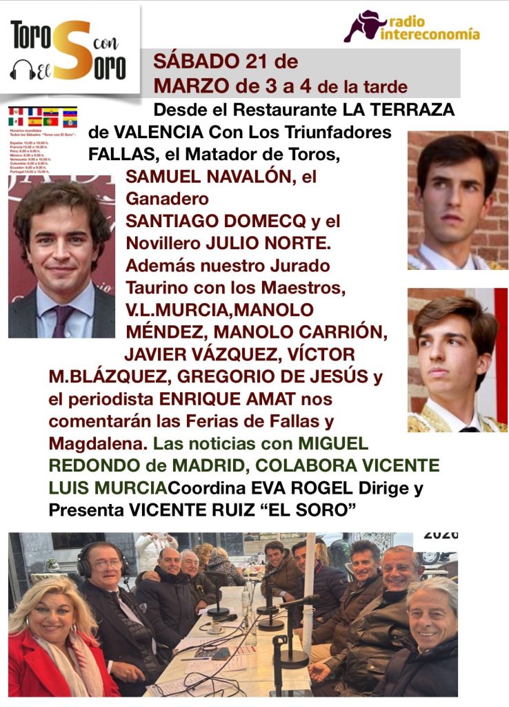 Esté sábado 21 de marzo de 3 a 4 de la tarde PROGRAMA RADIOFÓNICO Toros con El Soro en RADIO INTERECONOMÍA. Desde el...