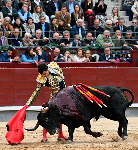 José María Manzanares a punto estuvo de perder el capote en el saludo a su primero y afortunado fue de no ser empitonado. Enjundia tuvo el inicio con la muleta llevándolo semigenuflexo, ceñido, con torería y por abajo desde tablas hasta el tercio. Dos series por el derecho en la corta distancia con muletazos lentos, suaves, bajando el engaño, con transmisión y abrochando con un enorme pase de pecho, gustaron. El aire molestó y por el izquierdo tuvieron menor calidad. Su segundo se quedó muy cerca en el capote. En la muleta por el derecho entró descompuesto y con justeza de fuerza. Por el izquierdo ligó cuatro con calidad sin obligar y remató con un importante pase de pecho.