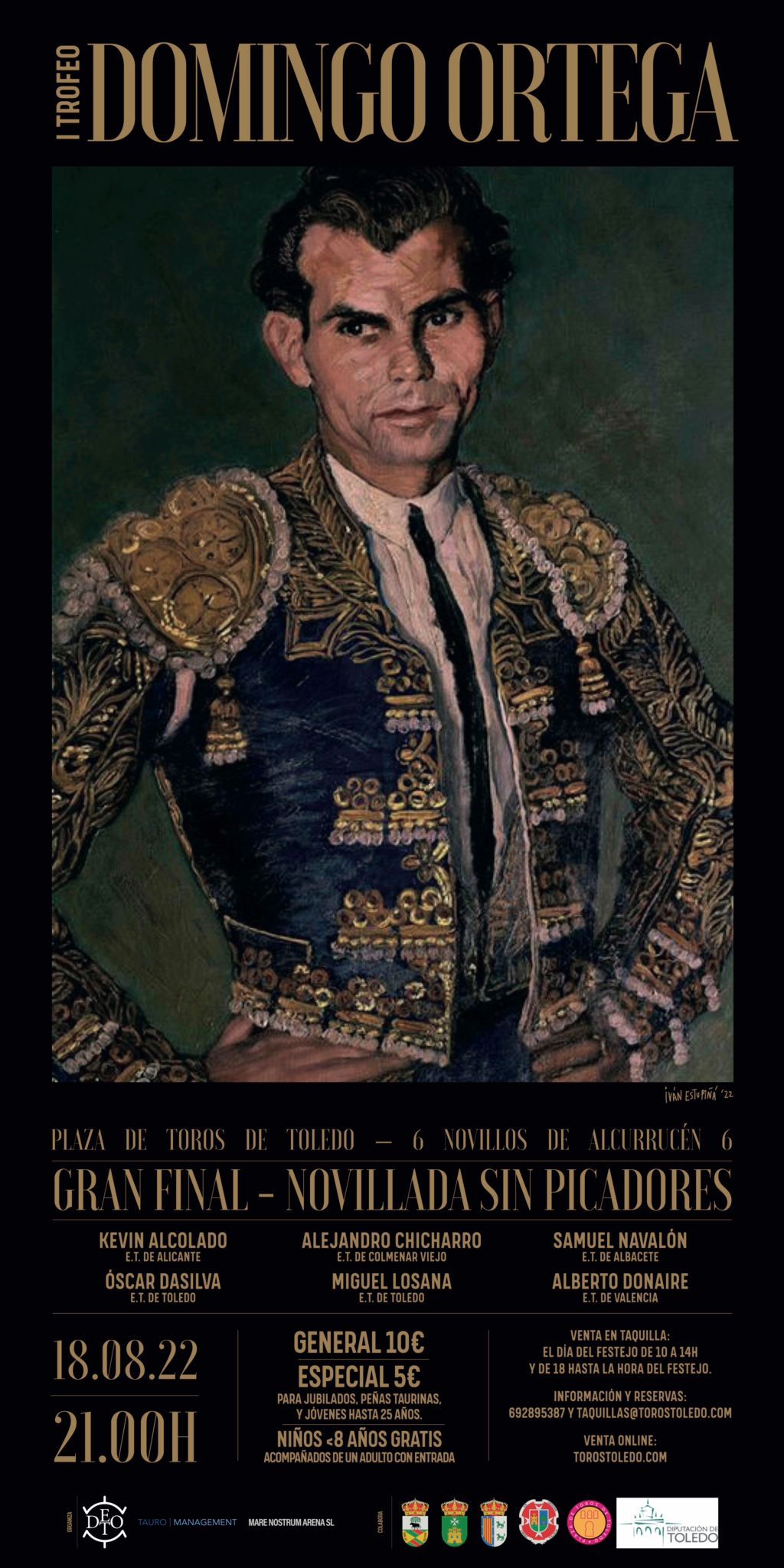La novillada se celebrará el jueves 18 de agosto, a las 21 horas, enmarcada en las fiestas patronales de Toledo.Tras las clases prácticas clasificatorias celebradas en Consuegra, Madridejos, Nombela y Garciotum, los novilleros designados como finalistas que se disputarán el trofeo serán Kevin Alcolado de la Escuela Taurina de Alicante, Óscar Dasilva de la Escuela Taurina de Toledo, Alejandro Chicharro de la Escuela Taurina de Colmenar Viejo, Miguel Losana de la Escuela Taurina de Toledo, Samuel Navalón de la Escuela Taurina de Albacete y Alberto Donaire de la Escuela Taurina de Valencia. Se enfrentarán a un encierro con el hierro de Alcurrucén