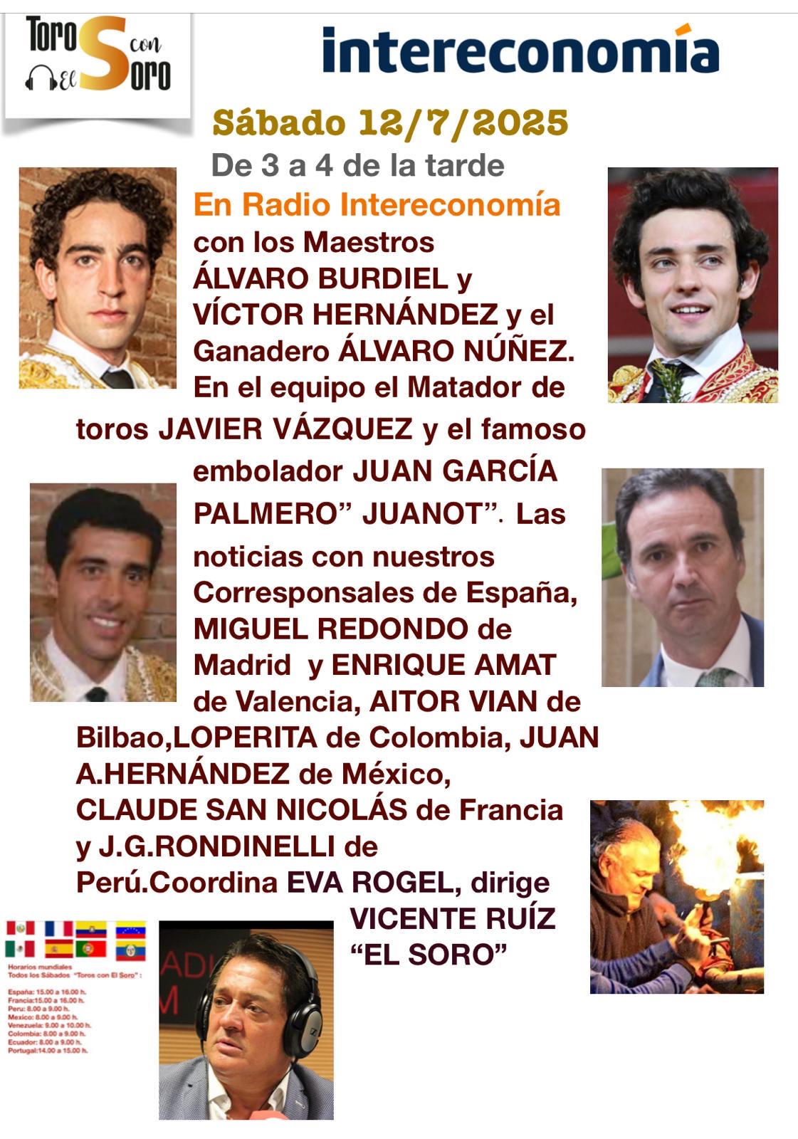 El programa “Toros con el Soro” de Radio Inteteconomia se emite hoy sábado 12 de julio de 2025 de 3 a 4 de la tarde.