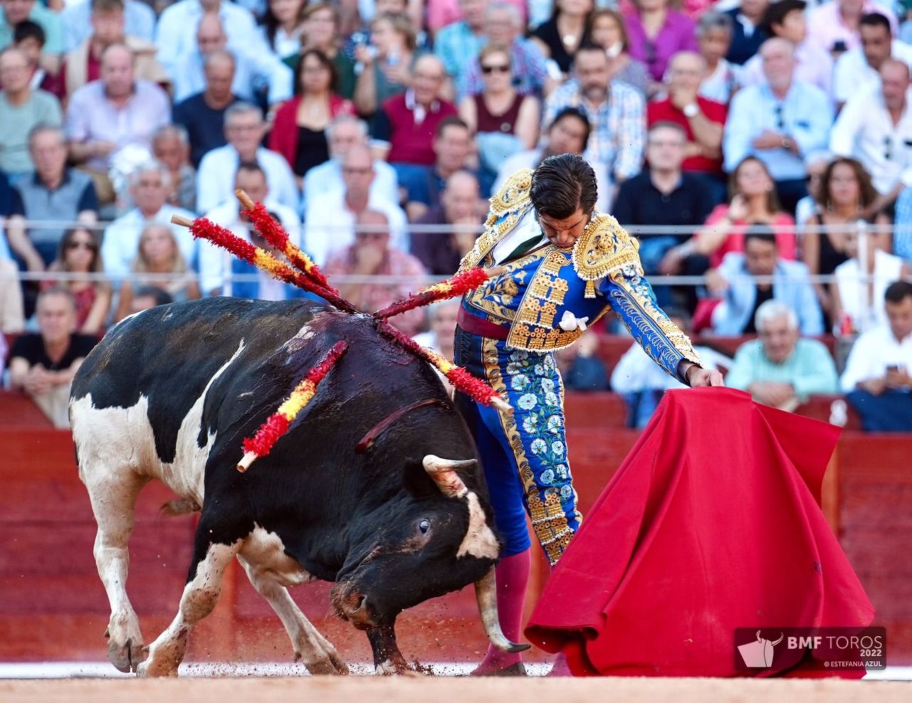 Máximos trofeos para los Hermoso de Mendoza en una tarde de rejoneo extraordinario. Pablo Donat, muy apoyado por sus paisanos, les acompañó a hombros. Bocairent e(Valencia), 10 de septiembre. Tres cuartos de entrada. Toros de Hnos. Moura Caetano, buenos en general (1° deslucido, 2° y 3° colaboradores, 4°, 5° y 6° repetidores). Pablo Donat, que tomaba la alternativa, oreja y dos orejas tras aviso. Pablo Hermoso de Mendoza: oreja y dos orejas y rabo. Guillermo Hermoso de Mendoza: dos orejas y dos orejas y rabo. Carlos Bueno Día grande en Bocairent con los Hermoso de Mendoza en el cartel y el doctorado de Pablo Donat, rejoneador de la vecina ciudad de Ontinyent. No le dio facilidades el toro de la alternativa a Donat, que intentó hacer las cosas con ortodoxia y pulcritud a pesar de que el animal se quedó muy parado desde que saltó a la arena. El de Ontinyent clavó de forma desigual pero siempre citando de frente y consiguió cortar su primera oreja en el nuevo escalafón. Volvió a pisar el albero en último lugar para lidiar un astado con más movilidad que le puso a prueba. Su quehacer empezó con nervios pero fue subiendo enteros a medida que crecía su confianza. Muy apoyado por su público pasó el examen y acabó acompañado a los Hermoso por la puerta grande gracias a la generosidad del palco, que premió su voluntad y disposición. Pablo Hermoso de Mendoza se lió a pinchar al primero de su lote …