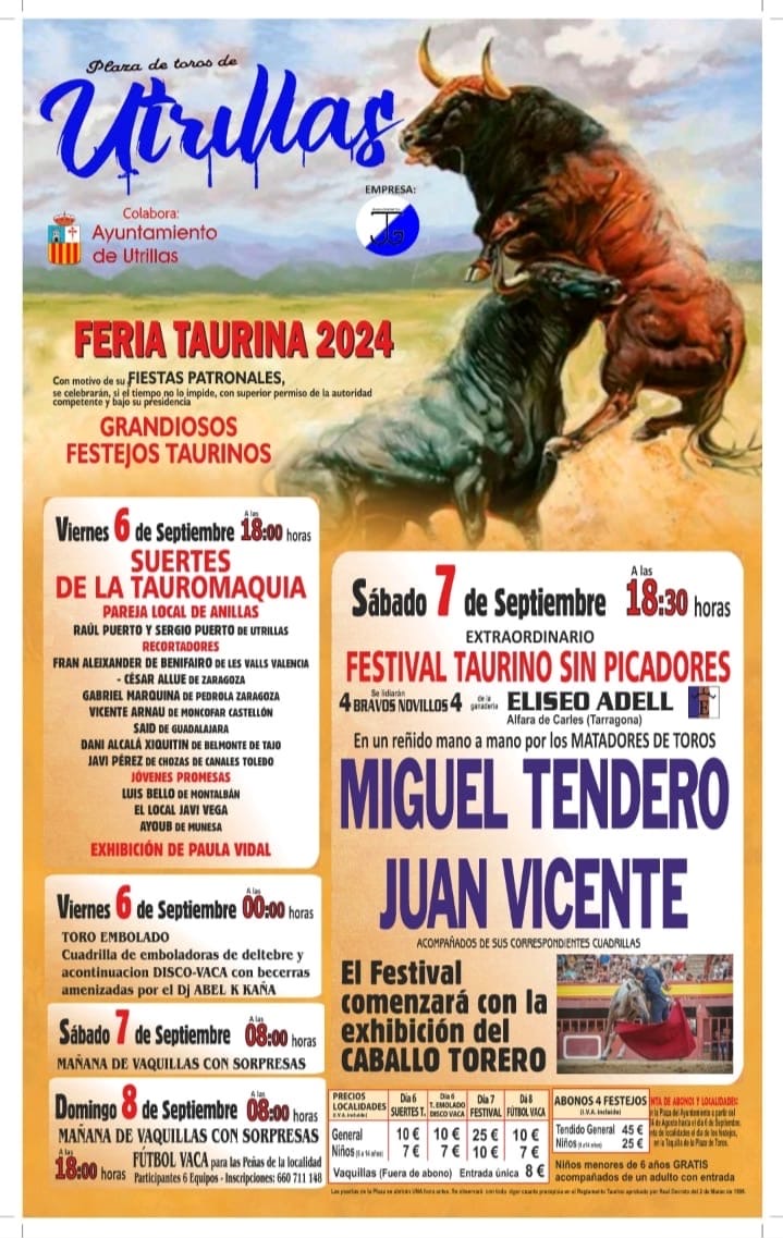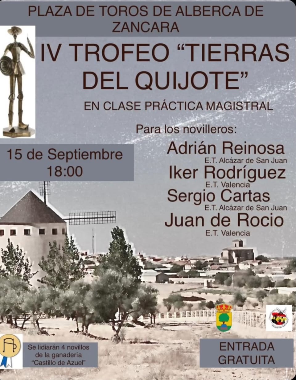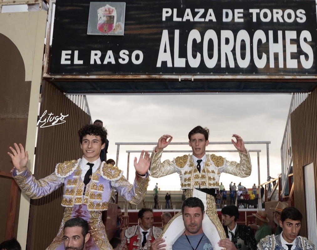 El alumno de la escuela de tauromaquia de Valencia Bruno Gimeno ha actuado esta tarde en la localidad alcarreña de Alcoroches. Por tercer año consecutivo, la empresa Tauromanagement, con la colaboración del Ayuntamiento y de la Comisión de Fiestas de Alcoroches, programó un cartel, donde se puso en juego el III Trofeo “El Angosto” de Alcoroches para el mejor novillero. Los astados fueron de Aurelio Hernando y actuaron mano a mano Javier Cuartero, de Alicante y Bruno Gimeno, quien sustituía al lesionado Pedro Rufo, de Toledo. Bruno cortó un total de tres orejas y un rabo por cuatro orejas Javier Cuartero. Al finalizar el festejo tuvo lugar el tradicional coloquio con los novilleros y el ganadero en el Ayuntamiento, y se hizo la entrega del Trofeo una vez contabilizados los votos del público que un año más, con la papeleta entregada junto con su entrada, decidieron el triunfador, galardón que irá a parar a las vitrinas de Bruno Gimeno. Foto: Litugo