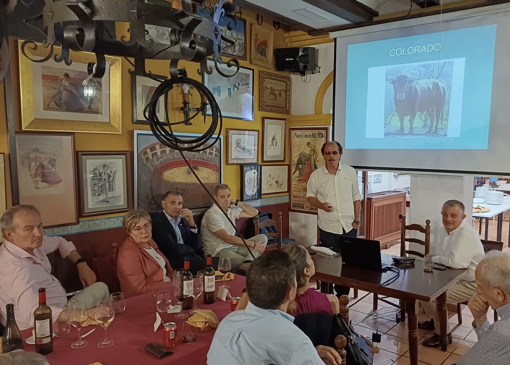 Dentro del calendario de actividades de la Asociación cultural, gastronómico y taurina "De Tinto y Oro" tuvo lugar una comida de hermandad para socios y amigos, seguida de un interesantísimo coloquio sobre la presidencia de los festejos taurinos. En el mismo tomaron parte José Antonio Gracia, durante muchos años presidente de la plaza de toros de Castelló, quien hizo una apasionante, disertación sobre las distintas capas y el pelaje de los toros de lidia. Completaron el cartel Luis Maicas y Jesus Merenciano, ambos presidentes de la plaza de toros de Valencia. A lo largo de un más que ameno coloquio, trataron una amplia variedad de temas relacionados con su función, cuyo punto más importante es defender el interés de los aficionados y preservar la autenticidad de este espectáculo, sobre todo en su defensa de la integridad del toro de lidia. Analizaron su trabajo el día del festejo, desde las primeras horas de la mañana hasta la noche día del festejo. Un trabajo intenso y que muchas veces no es fácilmente reconocido por el público. El acto contó además con la asistencia del Conseller de Agricultura, Pesca y Ganadería y gran aficionado José Luis Aguirre y la jefa de la Unidad de la Policía Nacional adscrita a la Comunidad Valenciana Marisol Conde. Tras el coloquio, se pudo seguir la retransmisión en pantalla gigante de la corrida de San Isidro. Fue la Corrida de la Cultura con toros de Victoriano del Río y de Toros de Cortés para Emilio de Justo, Borja Jiménez, Roca Rey.