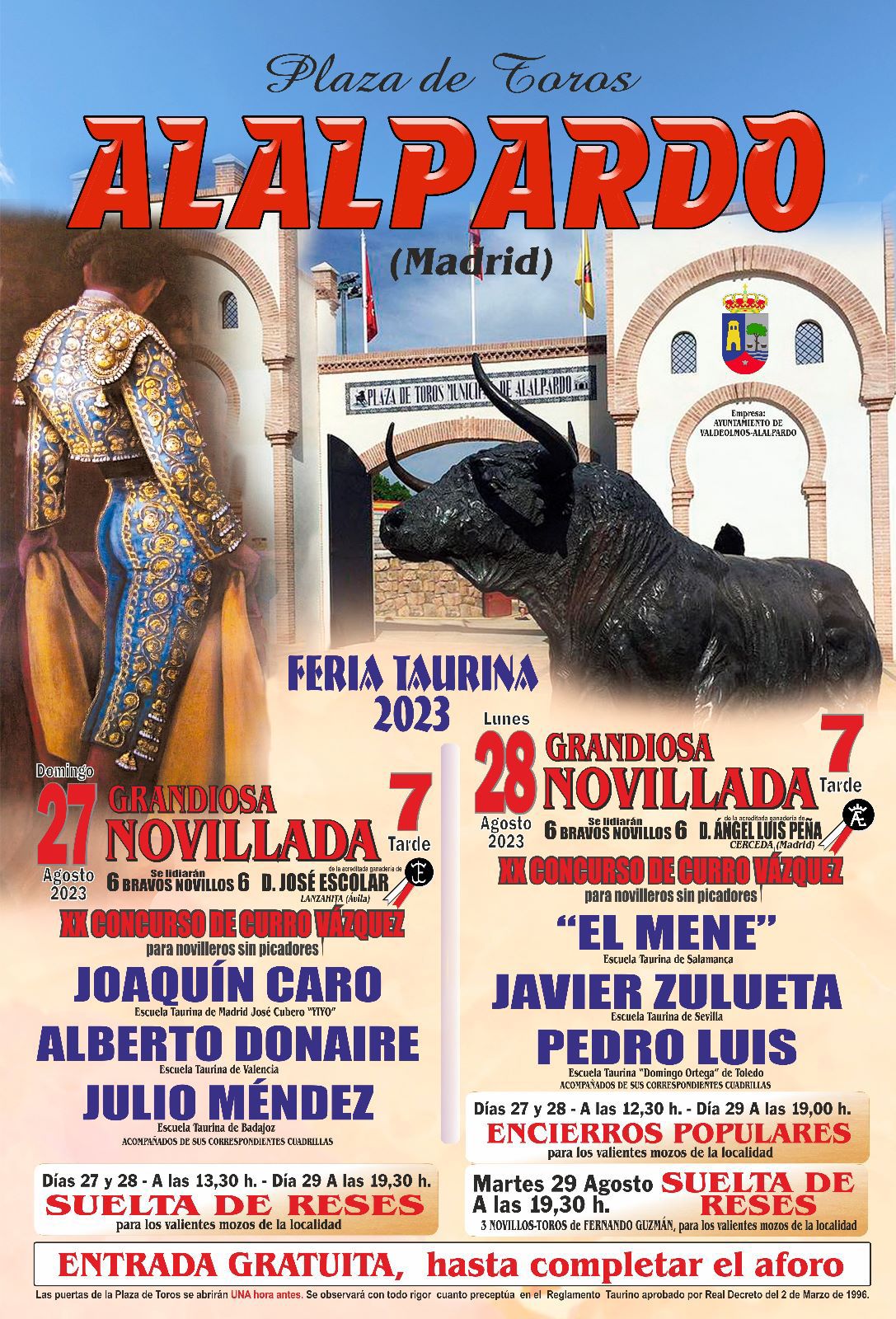 Sabado 26 de agosto de 2023. Plaza de toros de Bocairent. Media entrada en tarde entoldada y lluviosa. Novillos de José Cruz, con suficiente cuajo y de buen juego.. Al tercero, cuarto y quinto se les premió con la vuelta al ruedo. Porta Miravé, de la escuela de Huesca, silencio tras dos avisos. Fandila, de la escuela de Jaén, oreja. Bruno Gimeno, de la Escuela de Valencia, dos orejas. Juan Zamora de la Escuela de Albacete, dos orejas. Olga Casado, de la escuela de Madrid, dos orejas y rabo. Entre las cuadrillas destacaron en la lidia Juan Alberto Torrijos y Emilio Miranda. Presidió la concejal Mari Luz Pascual. Enrique Amat, Bocairent El primero de los dos festejos organizados por la Escuela de Tauromaquia de Valencia en colaboración con la Peña Taurina Esplá y con la Asociación Cultural Taurina de Bocairent tuvo un resultado triunfal. Los novillos de José Cruz estuvieron muy bien presentados. Con romana y plaza, dieron buen juego. El castaño que abrió plaza, un ejemplar sobrado de romana y cuajo, fue y vino y se dejó, y dio opciones a su matador. El negro segundo, con mucho volumen, se desplazó aunque le costó a veces y se aplomó pronto. Con todo, dio un gran juego. Excelente el tercero, Javalino, que tuvo prontitud, alegría, fijeza y repitió las embestidas, humilló y dio un excelente juego. Superó la nota el cuarto, Platero, con bravura, transmisión y movilidad. Y el cierra plaza, Extraordinario de nombre, también tuvo movilidad y buen son. Fue un gran novillo. Porta Miravé, de la escuela de Huesca, un torero que …