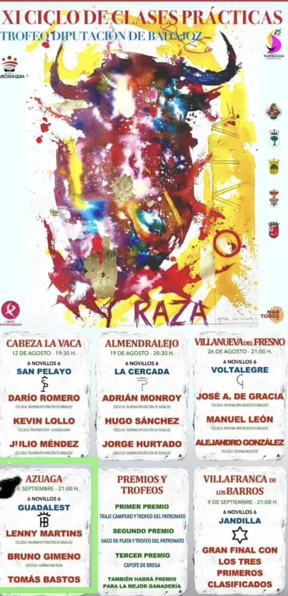 Viernes, 11 de agosto de 2023. Plaza de toros de Villamalea. Más de media entrada en tarde de sofocante calor. Astados de Hermanos Serrano, de no más que correcta, presentación y escasos de fondo. Rubén Cortés (grosella y plata), de la escuela taurina de Albacete, saludos tras aviso. Bruno Gimeno, (malva y oro), de la escuela taurina de Valencia, saludos tras dos avisos. Alejandro González, (nazareno y azabache) de la escuela taurina de Albacete, oreja tras aviso. Juan Zamora, (rosa y plata ) de la escuela taurina de Albacete, dos orejas. Entre las cuadrillas sobresalió con los palos Victor Sanchis de la Concepción. Lidió con templanza Javier Perea y Francisco Javier García estuvo oportuno en quites. Enrique Amat, Villamalea La plaza de toros manchega de Villamalea fue escenario de una novillada, sin picadores, con participación de los alumnos de las escuelas taurinas de Albacete y de Valencia. Un festejo atractivo, y que en pleno mes de agosto supone una bocanada de aire fresco. Lo dicho. Presenciar festejos en plazas de las pequeñas localidades, en sus fiestas patronales. Llenas de sabor, ambiente, y tradición, es todo un lujo. Aunque había que tener afición, "la picara afición" que decía el dibujante Martínez de León, para echarse a la carretera en medio de un calor africano. Una tarde de fuego abrasador. El sol inclemente, atizando con fuerza. Y aposentar el trasero en la piedra. Mucha afición. Y mucho mérito. El que fuera novillero de Requena Carlos Ortega, quién cumplió su sueño de torear y luego ha triunfado como profesional en otros menesteres, no quiso perderse el festejo. Como tampoco lo hizo Julio Aguado, directivo del Casino de Agricultura de Valencia. Qué valor, y que afición. Los que fueron, …