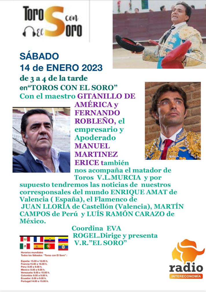 El matador de toros valenciano Miguel Gimenez continúa su periplo por ruedos peruanos, en estos comienzos de la campaña 2023. Los compromisos que tenia previstos los pasados días han quedado aplazados debido a la crisis política que se vive en el país. De esta forma, el próximo día 30 de enero hará el paseíllo en la plaza San Antón, en un festejo con motivo de la festividad de San Antonio Abad. En el mismo, se lidiarán tres toros de Checayani y dos de Rural Alianza, y Miguel compartira cartel con el venezolano Manolo Muñoz y el peruano Angel Jiménez. Y el 6 de febrero actuará en Ayaviri, en la plaza de toros Roja Colina, con ocasión de la fiesta de la Virgen de la Candelaria. Se lidiarán toros de las ganaderías de Campo Bravo, Rural Alianza y Angeles de Santa Rosa. Sus matadores serán Cristóbal Pardo de Colombia, Oscar Huayta de Perú, Cristian Ramos de Perú y Miguel Giménez.