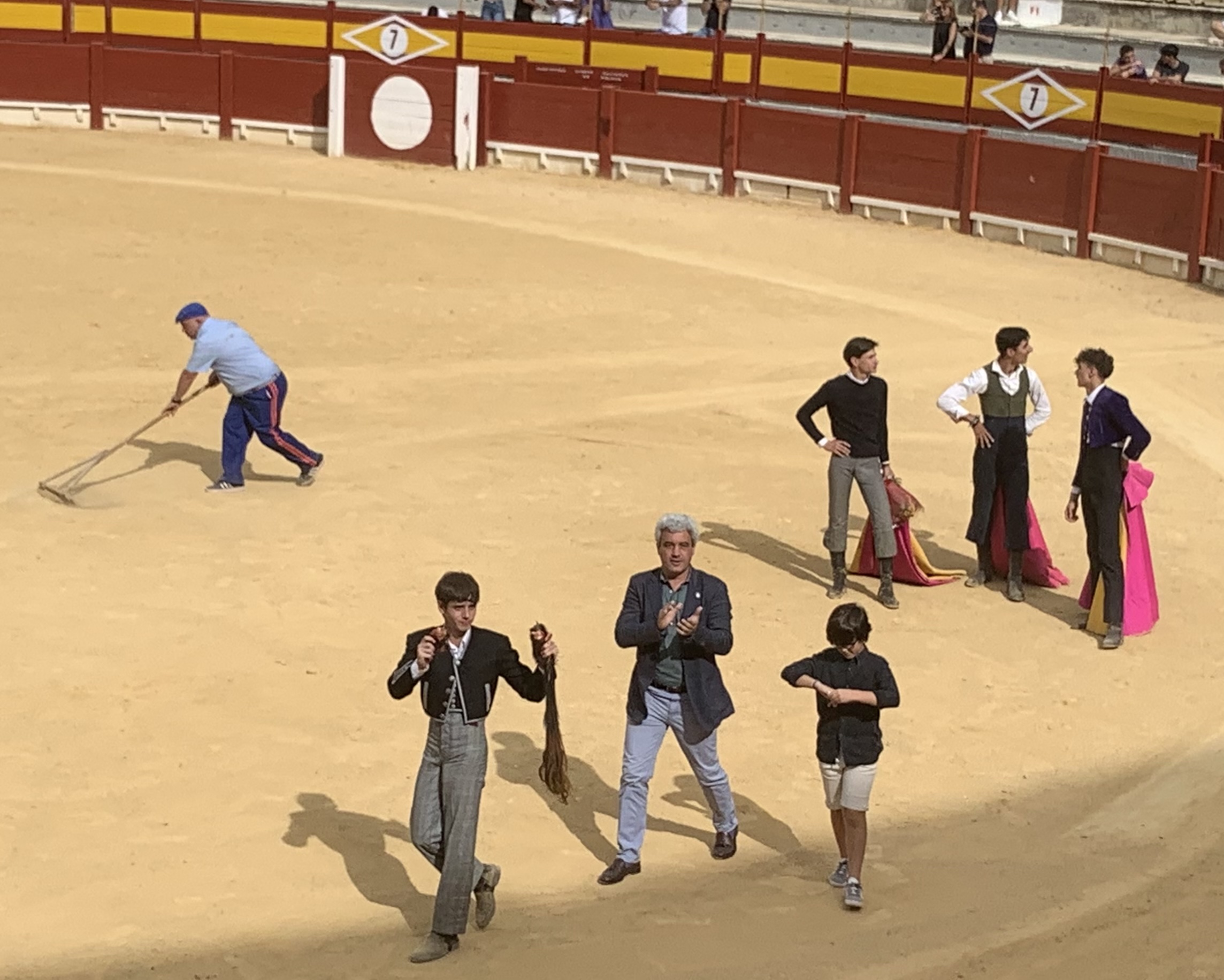Domingo 16 de octubre de 2022. Plaza de toros de Alicante. Un cuarto de entrada en mañana soleada. Novillos de Antonio López Gibaja, bien presentados y de buen juego. Al cuarto, Zambullido, y al sexto, Vacilón, se les premió con la vuelta al ruedo. Bruno Martínez , de la escuela de Castellón, dos orejas. Bruno Gimeno, de la escuela de Valencia oreja tras aviso. Alejandro Troya, de la escuela de Alicante, dos orejas tras aviso. Ian Bermejo, de la Escuela de Castelló, oreja. Israel Guirao, de la escuela de Valencia, cogido al hacer un quite. Su novillo lo mató Alberto Donaire, Escuela de Valencia, saludos tras aviso. Javier Cuartero, de la escuela Alicante, dos orejas y rabo. Entre las cuadrillas se lució con su templada brega Luis Meseguer. Presidió Emilio García El Lince. Israel Guirao fue atendido de una contusión en la región cervical que le impidió continuar la lidia y de pronóstico reservado, pendiente de estudio radiológico. Enrique Amat, Alicante La clase práctica matinal celebrada en Alicante se prolongó más de tres horas y media. El alumno de la escuela de Valencia Israel Guirao fue cogido al hacer un quite al cuarto, y tuvo que ser trasladado a un hospital por la UVI móvil. Y hasta que no regresó esta, no pudo continuar el festejo. Total, media hora de retraso, más lo que se demoraron los chavales toreando y matando, más el sobrero que se lidió para todos los actuantes. La gente comenzó a abandonar los tendidos en vista de esta demora y al final acabaronde presenciar el espectáculo, como se decía otrora, la música…y acá. Tras el percance del alumno de la escuela de Valencia, se decidió que torease otro alumno de este centro, y en este caso, el elegido fue Alberto Donaire, quien presenciaba el festejo …