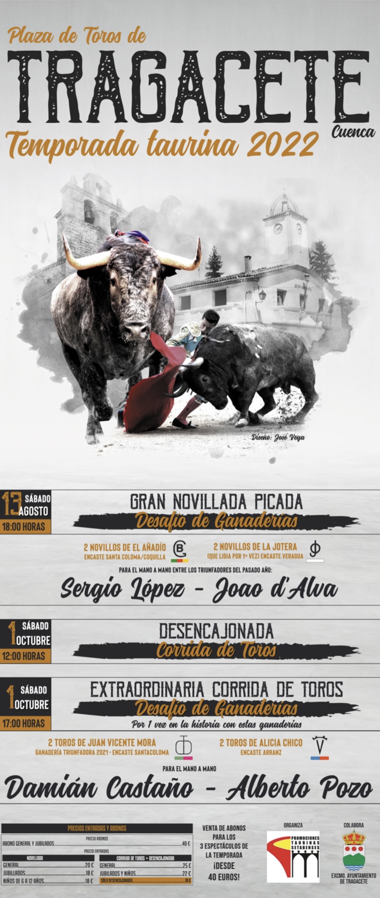 La localidad de Tragecete ha realizado una importante apuesta por la tauromaquia al programar una Novillada Picada y una Corrida de toros. El pasado año, el Ayuntamiento de Tragacete (Cuenca) y la empresa Promociones Taurinas Setabenses, dirigida por Diego García, llegaron a un acuerdo para gestionar la Feria Taurina dando una novillada picada en modalidad de Concurso de Ganaderías, para inaugurar el coso taurino portátil que adquirió el Ayuntamiento y que quedo instalado de manera fija. Para este año, ambas partes siguen apostando de manera decidida por la fiesta. De esta forma, empresa y ayuntamiento han dado un paso más, programando tres espectáculos. El próximo 13 de Agosto se celebrará una novillada en modalidad de desafío ganadero, entre astados santacolomeños de “El Añadio” y Veraguas de “La Jotera”, que serán lidiados por Sergio López y Joao d ́Alva (triunfador del pasado año). Para el 1 de Octubre habrá una corrida de toros, también en modalidad de Desafío Ganadero, entre los hierros de Juan Vicente Mora y Alicia Chico, que serán lidiados por Damian Castaño y Alberto Pozo. Por la mañana se realizará una desencajonada. Todos estos espectáculos se podrán presenciar por solo 40 euros.