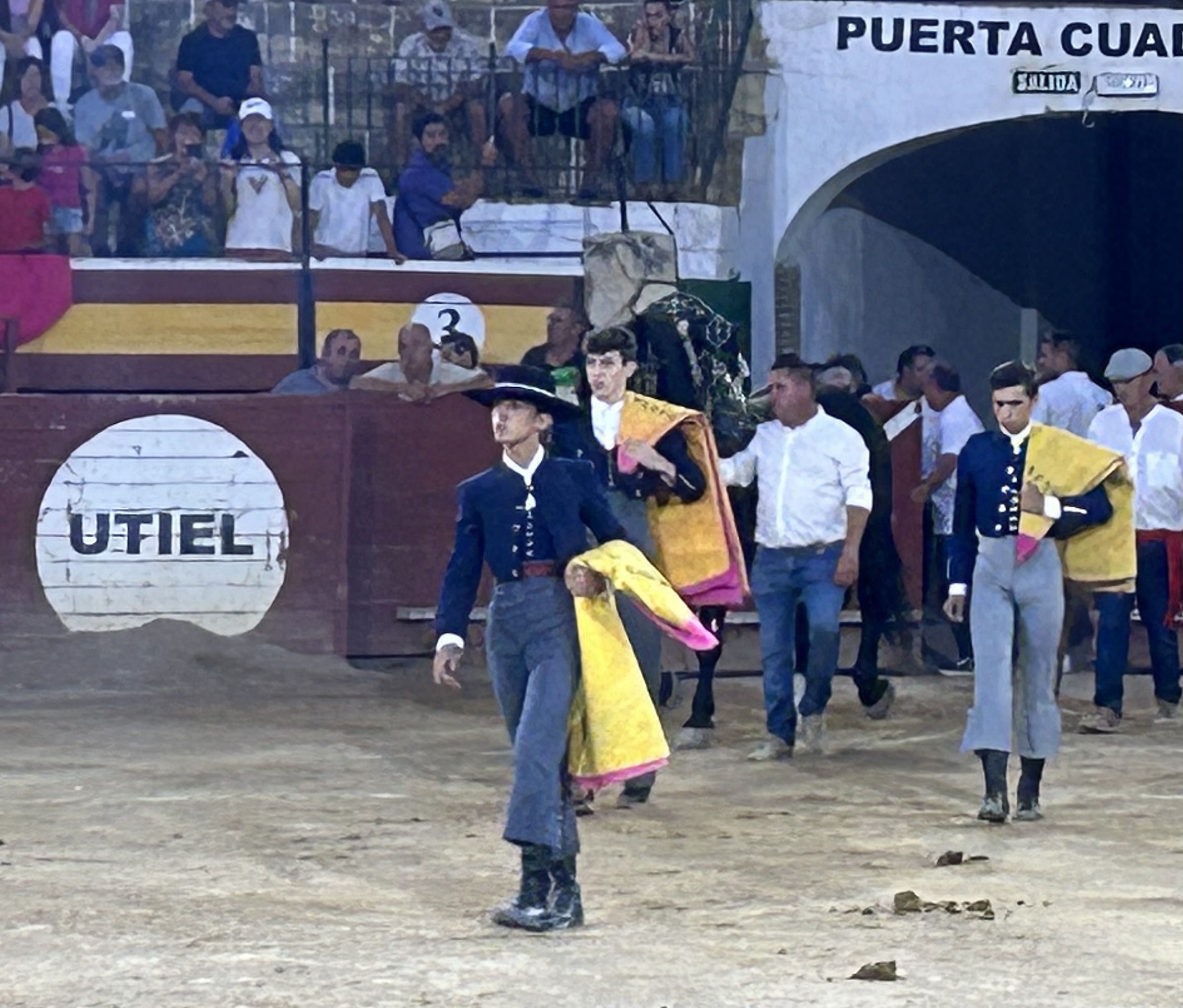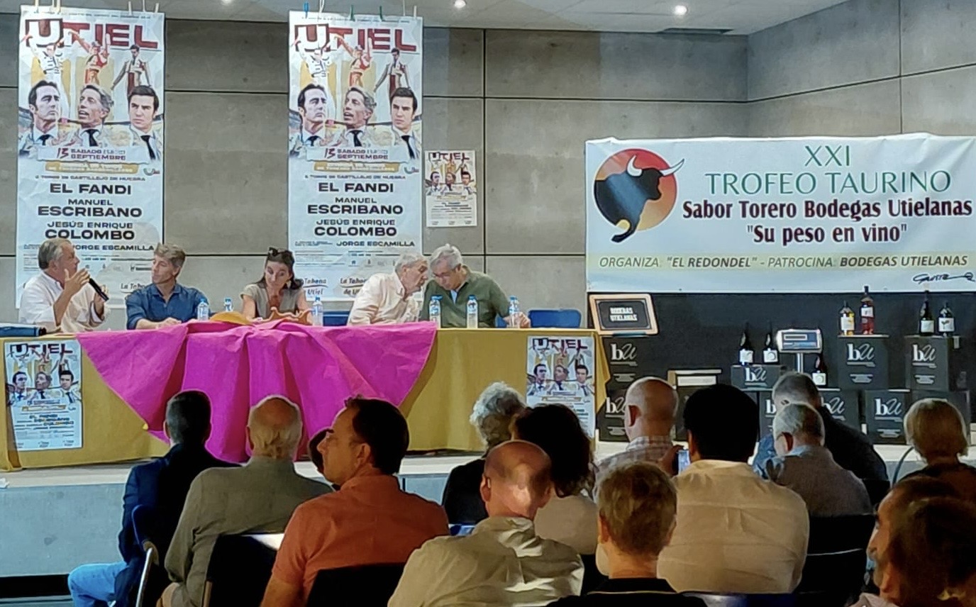 En la corrida de toros celebrada ayer en la plaza de Utiel estaba en liza el XXI Trofeo Taurino Sabor Torero Bodegas Utielanas, su peso en vino, a la faena de mayor sabor torero. Un galardón instituido por la tertulia taurina El redondel de Radio Utiel 107.7 FM y patrocinado por Bodegas Utielanas. El triunfador fue, ya por segunda vez, Manuel Escribano, quien recibió el equivalente de su peso, en esta ocasión 77 kilos en la báscula, en botellas de vino. Alberto Lacruz, presidente de Bodegas Utielanas, hizo la entrega simbólica de las cajas de vino. Previamente tuvo lugar una tertulia, celebrada en el incomparable marco del Patio de la Casa Alamanzón de Utiel, en la que participaron el propio Manuel Escribano, Maria José Majeroni Sánchez - Cobaleda, titular de la ganadería Castillejo de Huebra, el crítico taurino Juan Manuel Sánchez Morate, Enrique Amat y Miguel Diaz en representación de la tertulia taurina El redondel.