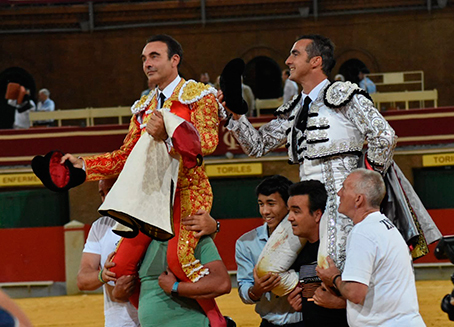 Granada, 30 de mayo. Primera de Feria Corpus. Toros de Domingo Hernández. Enrique Ponce, oreja y dos orejas. El Fandi, oreja y dos orejas. Sebastián Castella, oreja y palmas.