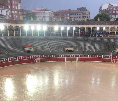 El festejo fue suspendido por la lluvia y el pésimo estado del ruedo. Paco Delgado Foto: Alberto Núñez Aroca Final fallido en Albacete, un fin de fiesta inesperado y frustrado por la lluvia. Unos minutos antes de la hora del inicio de la función comenzó a llover con fuerza y eso hizo que el ruedo, ya para entonces en unas condiciones pésimas, se pusiese impracticable. La gente tenía ganas de toros -ya se ha visto a lo largo de todos estos días, con una muy buena asistencia a todos y cada uno de los festejos que componían la feria- y tras la gran tarde protagonizada el día anterior por los toros de La Quinta y sus matadores, El Cid, especialmente, y Emilio de Justo, los aficionados esperaban ilusionados el remate del abono con otro plato suculento: los toros de Victorino Martín. Pero los designios del Señor son inescrutables y el mal tiempo de los últimos días se complicó todavía más. Durante todo el día hubo chaparrones intermitentes y el cielo poco antes de que la corrida comenzase de nuevo se desató un fuerte aguacero y eso hizo que el ya para entonces muy deficiente estado del piso empeorase, convirtiéndose en un barrizal. Los toreros, ya preparados en el túnel de cuadrillas, se asoman a ver cómo está el patio y dialogan con la autoridad y la empresa. Amaina la lluvia pero no cesa y se sigue calando la arena. Manuel Escribano, Rubén Pinar y Sergio Serran salen al ruedo y …
