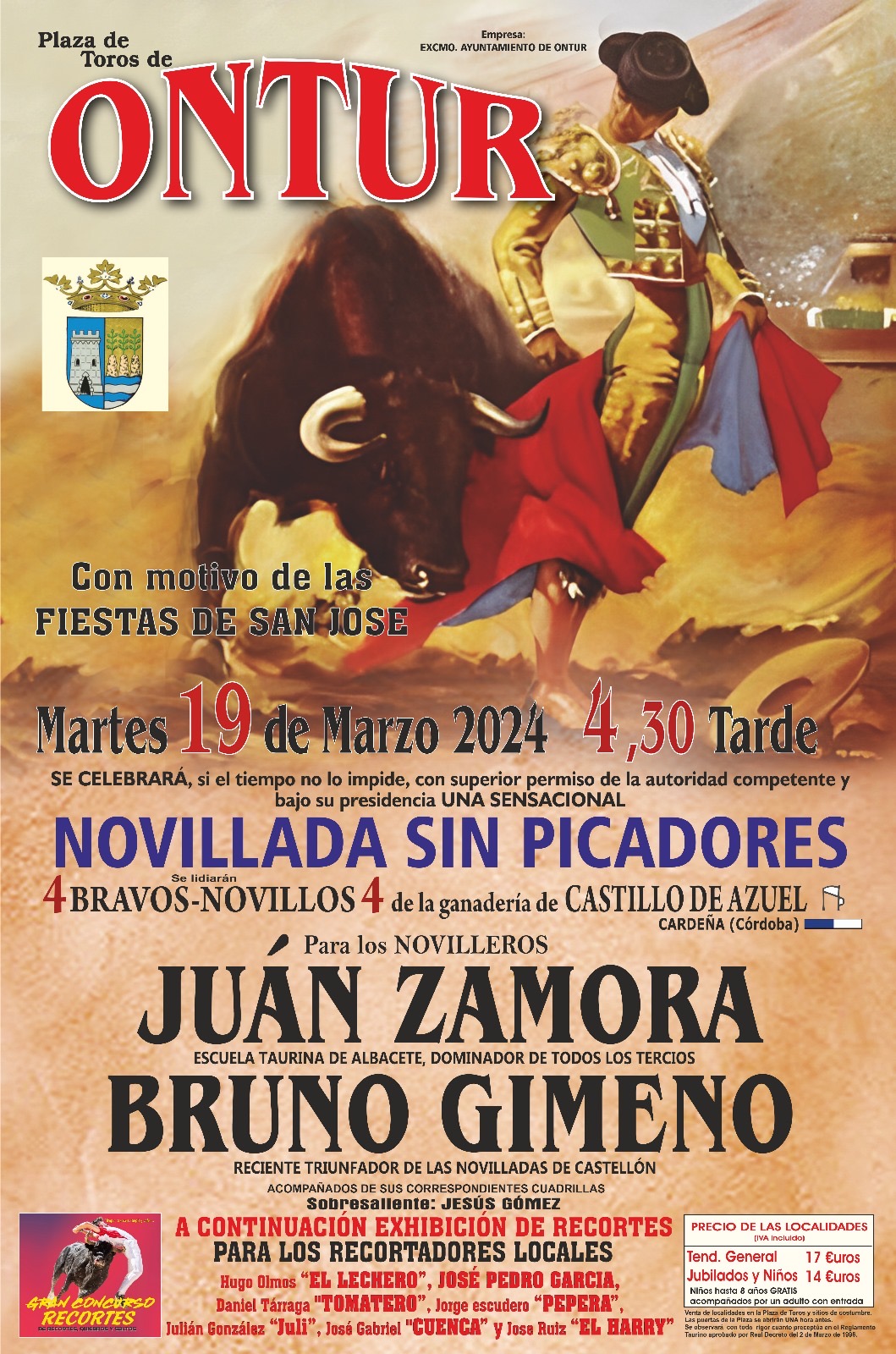 El alumno de la escuela de tauromaquia de Valencia Bruno Gimeno, quien cortó dos orejas en la pasada feria de la Magdalena de Castelón, actuará el próximo martes día 19 de marzo en la plaza de toros manchega de Ontur.