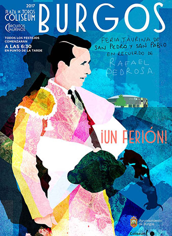 El cartel, obra de Juan Iranzo, rinde homenaje a la figura del matador de toros burgalés Rafael Pedrosa, fallecido en enero de este año.