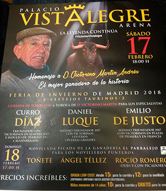 Sábado 17 de febrero: Toros de Victorino Martín para Curro Díaz, Daniel Luque y Emilio de Justo.
