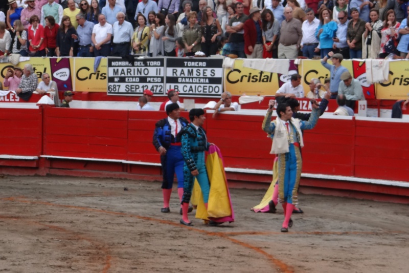 Manizales, 7 de enero. Casi lleno. Toros de Juan Bernardo Caicedo: bien presentados y nobles. Al cuarto se le dio la vuelta al ruedo. Ramsés: ovación y dos orejas. Miguel ángel Perera: oreja y pitos. Pablo Hermoso de Mendoza: pitos y silencio.