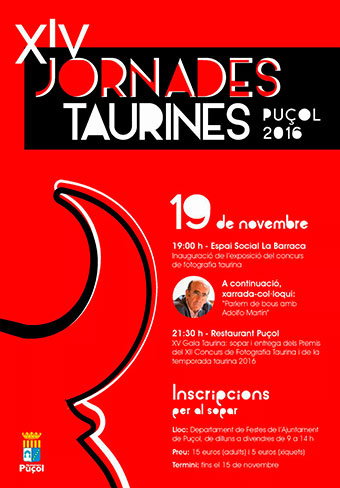 El sábado 2 de diciembre a las 19.00 horas en el espacio social “La Barraca” del municipio valenciano de Puçol, tendrá lugar la charla correspondiente a las XV Jornadas Taurinas de Puçol. Unas Jornadas culturales que gozan de gran interés entre la afición taurina valenciana gracias a la relevancia de los invitados que año tras…