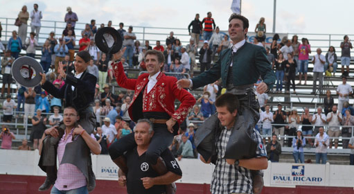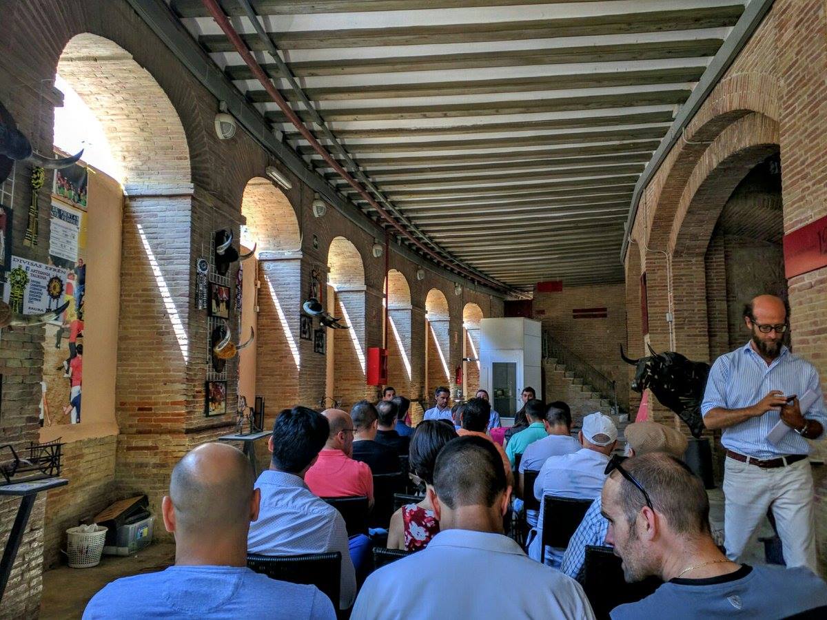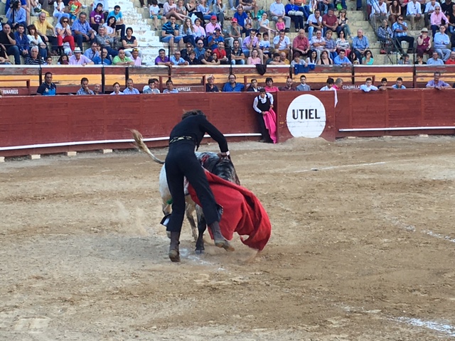 Palmas Para la preciosa estampa del toro lidiado en quinto lugar, como se puede ver en esta imagen del fotógrafo requenense Martinez Cantero. Un ejemplar de Victoriano del Río, Alabardero de nombre. Un astado de pelaje sardo que otrara era bastante típico en la ganadería de Miura. Aunque peleó de modo deficiente el caballo, del que salió suelto y huido y siempre desparramando la vista, rompió a bueno en la muleta y resultó un ejemplar de altísima nota. Para la excelente estocada que recetó al quinto de David Mora, ejecutada con lentitud y verdad. El toledano coronó así una actuación en la que hubo templanza, gusto y entrega, y en la que mostró que se encuentra en el camino de su recuperación ras la grave cornada sufrida hace dos años. Para el excelente nivel que exhibieron los toreros de plata y azabache en el tercer festejo de la feria colocando las banderillas. Javier Ambel, quien saludó tras parear con lucimiento al primero de la tarde. Hizo lo propio Ángel Otero en el segundo. Y en el cuarto se desmonteraron Curro Javier y Guillermo Barbero. Domingo Siro mereció hacerlo en el sexto, junto a Jesús Arruga, pero su matador no tuvo el gesto de autorizárselo, a pesar de la fuerte ovación que recibieron. Para el monosabio que salió en el segundo de la tarde con tanta presteza como decisión a ayudar al picador cuando el toro estaba romaneando y a punto de derribar a la cabalgadura Para el espacio Querencias, …