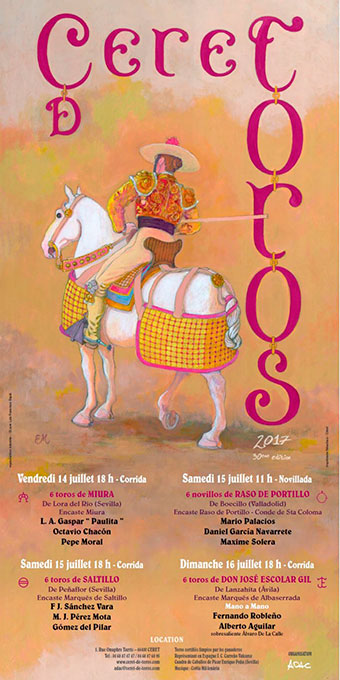 Se presentó un vídeo con las reses que se lidiarán, habitualmente de gran presencia y de las ganaderías denominadas “toristas”: la señera Miura, José Escolar, y Saltillo. Además, la novillada que se celebrará la mañana del sábado 15 con reses de Raso de Portillo. Presentó el acto el abogado, y vicepresidente de la Federación Taurina, Ángel Lería. Yen el estrado estuvo también un novillero que hará el paseíllo en el coso francés: Máxime Solera. La empresa tenía pensado en un principio, y aprovechando el 30 aniversario de esta feria, traer las ganaderías más significativas que han lidiado en tan largo periodo de tiempo, pero no ha sido posible. El afán de estos aficionados, al contrario de los “taurinos al uso”, no está en el interés crematístico ya que se paga un precio muy alto a los toreros y las ganaderías son de mucho prestigio. Son los mismos aficionados que pusieron el dinero para construir este bello coso (aunque de un ruedo pequeño, hasta el punto de que sólo cabe un picador por toro lidiado)…