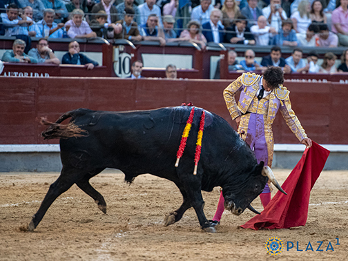 Lalo de María solo pudo bregar sin lucimiento ante en el que abrió tarde que salió suelto. Se entregó en varas. Brindó al público. Inició de rodillas con la muleta y puesto en pie con un par de trinchera y dos de pecho ganó terreno, colocándole en el tercio. Acudió al cite con codicia desde lejos y lo intentó por ambos pitones, teniendo mayor acople y profundidad, frente a un noble astado, pero sin adelantar la pierna de salida del muletazo. Por el izquierdo no terminó de ceñírselo. Aún sin verlo claro estuvo aseado. Le devolvieron su segundo y salió el sobrero de Torrehandilla que no se entregó en el capote. En la segunda serie por el izquierdo al tercer muletazo tocó tela y empezaron a salir enganchados y sin transmisión. En la serie siguiente comenzó a levantar la cara, entrar con brusquedad y ponerse difícil yendo la faena a menos.