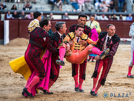 Gerpe fue cogido al pasar de muleta al sexto, que le enganchó hizo por él en el suelo.