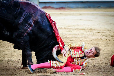 Javier Cortés fue cogido por su primero de Marqués de Albaserrada y no pudo matarlo.