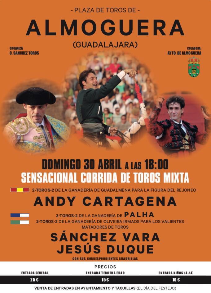 El matador de toros valenciano Jesús Duque comenzará su temporada el domingo 30 de abril en la plaza alcarreña de Almoguera. En este festejo se lidiarán toros las ganaderías de Palha y Oliveria Irmaos, ambos propiedad de Joao Folque de Mendoça. Por su parte, los astados de rejones luciráne l hierro de Guadalmena. Duque alternará con el rejoneador Andy Catagena y Sánchez Vara.