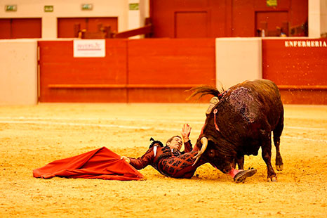 El matador onubense David de Miranda no podrá cumplir con su compromiso de este domingo, 5 de octubre, en Vila Franca de Xira (Portugal), tras sufrir un fuerte politraumatismo en la zona lumbar izquierda durante la corrida celebrada este sábado en la plaza de toros de Las Rozas, donde sufrió una aparatosa voltereta en el quinto que le obligó a pasar por la enfermería al término del festejo.