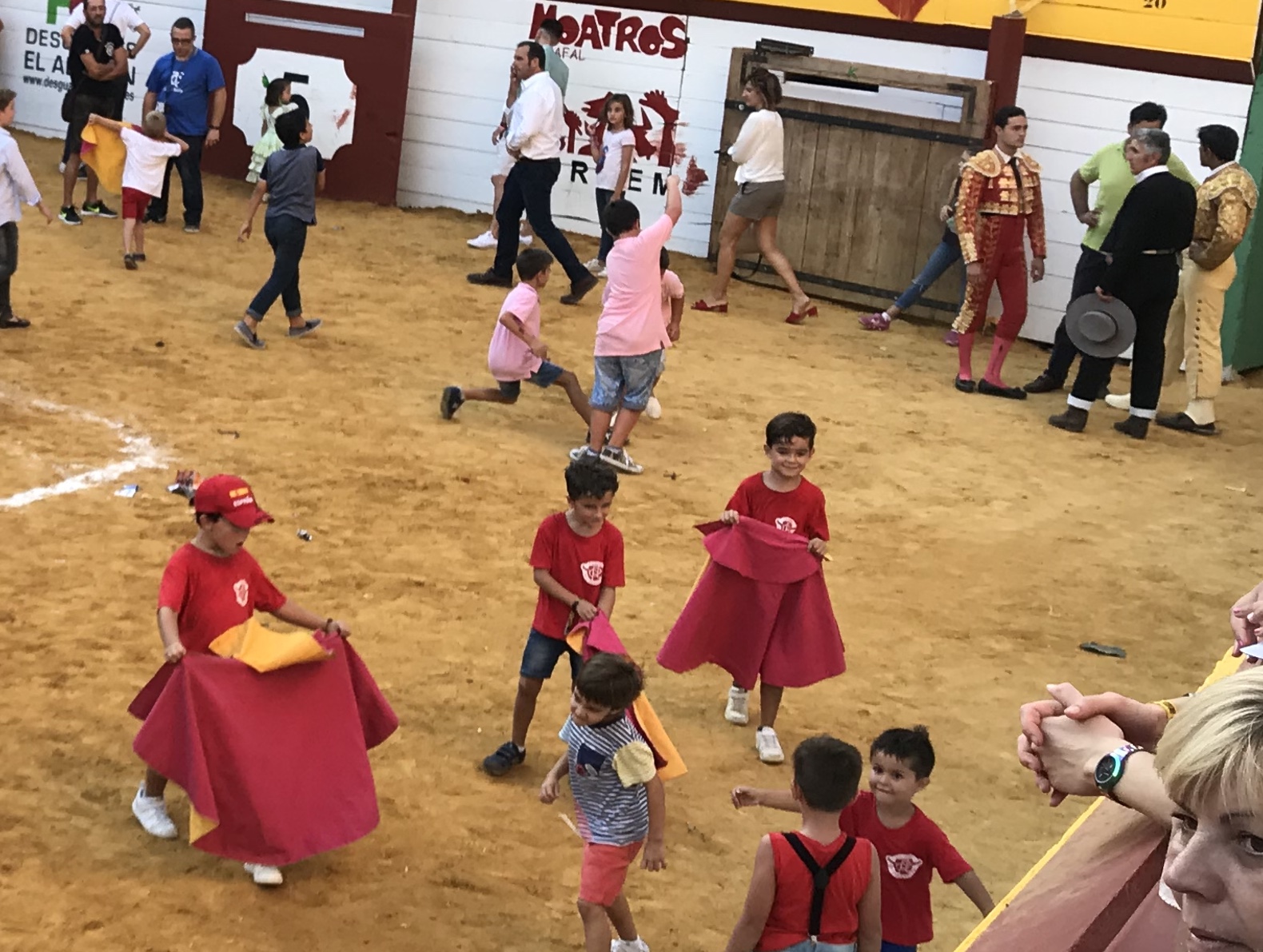 A lo satisfactorio y estimulante que resulta, por lo que de siembra de afición tiene, ver la plaza llena de chiquillos en el descanso, jugueteando por la arena. Y muchos de ellos, con pequeños capotes y muletas toreando de salón.