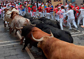 El cuarto encierro de los Sanfermines 2018 ha sido veloz y limpio con los toros de la ganadería gaditana Fuente Ymbro completanto el recorrido desde los corrales del gas a la plaza de toros en 2 minutos y 15 segundos, tres segundos más rápido que el año pasado.