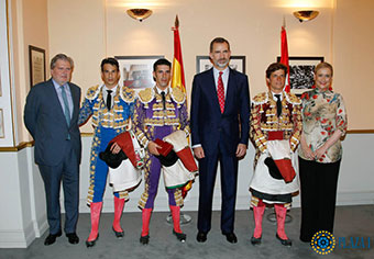 El público que llenó los tendidos recibió a S.M. el Rey Don Felipe VI con una fuerte ovación cuando hizo su aparición en el palco acompañado por Cristina Cifuentes, Presidenta de la Comunidad de Madrid eÍñigo Méndez de Vigo, Ministro de Cultura.