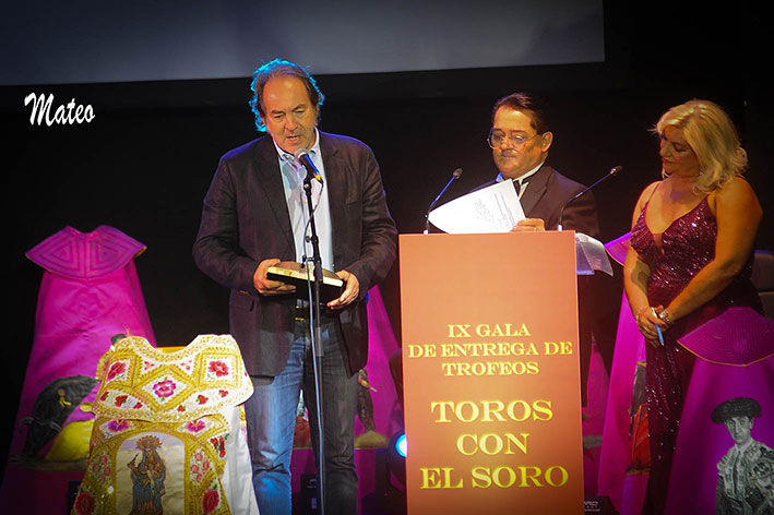 Ayer se celebró la novena edición de la gala de entrega de premios que organiza Vicente Ruiz “El Soro”. Con el Teatro Olympia de Valencia a reventar, se hizo entrega de los correspondientes galardones a los más destacados de las tres principales ferias la Valencia, Alicante y Castellón. Recogieron sus correspondientes trofeos Román, Victorino Martín, Victoriano del Río, La Quinta, Partido de Resina y Daniel Ramos; El Puchano, Juan Peña, Carioca, Álvaro Oliver, Juan Alberto Torrijos, Alberto Donaire, Javier Zulueta y Javier Cuartero.
