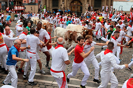 Los toros de Victorino del Río han protagonizado esta mañana un encierro rápido, empleando un tiempo de 2.28 segundos, en elque ha habido varios percances y caídas a lo largo de todo el recorrido. En Mercaderes se ha quedado gente parada, hasta cuatro corredores se han salvado de percances más serios.