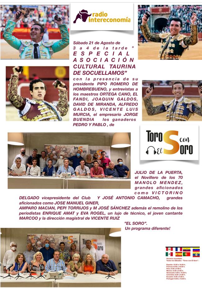 El programa “Toros con el Soro”, de Radio Intereconomía, se puede escuchar mañana sábado día 21 de agosto de 2021 de 15.00 a 16.00 horas yse emite desde Socuellamos.