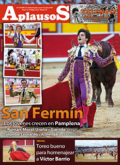 El número 2.076 de APLAUSOS ya está en los quioscos. El semanario taurino destaca en su primera página la actuación de los jóvenes José Garrido, Román, Pepe Moral y Paco Ureña en el primer tramo de la Feria de San Fermín de Pamplona así como el triunfo de Jesús Enrique Colombo, Leonardo Hernández y Roberto Armendáriz. Asimismo, también se hace mención en portada a la Feria del Ángel de Teruel en el que el toreo bueno se hizo presente para homenajear a Víctor Barrio.