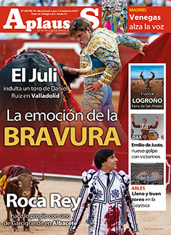 El número 2.085 de APLAUSOS ya se encuentra en los quioscos. El Juli y Roca Rey protagonizan la primera página del ejemplar bajo el titular “La emoción de la bravura”. Madrileño y peruano fueron los nombres propios del pasado fin de semana tras indultar a sendos toros de Daniel Ruiz y Garcigrande en Valladolid y Albacete, respectivamente.