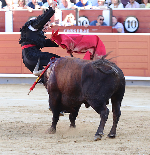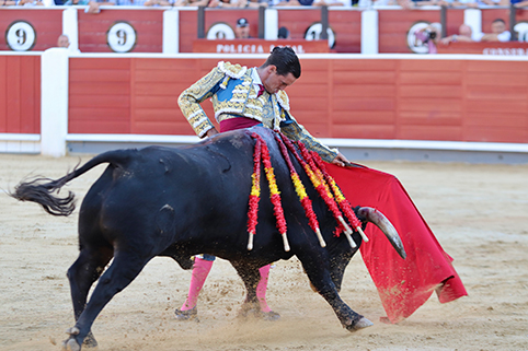 Sacó a los medios con solvencia al acometedor y pegajoso sexto, al que se dio muy mala lidia en los primeros tercios y llegó a la muleta a la contra y pendiente del torero que prácticamente no pudo dar ni un muletazo.