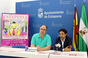 El teniente alcalde del área de Agricultura, Manuel Aguilar, y el empresario José Luis Lara, han presentado hoy la corrida de toros que se celebrará con motivo de la Feria y Fiestas Mayores de Estepona.
