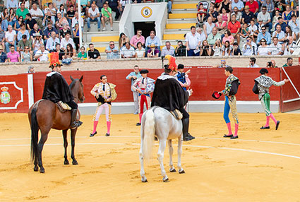 Este sábado, día 28 de marzo, se ha celebrado en la más que centenaria plaza de Bocairent una clase práctica con intervención de alumnos de la escuela de tauromaquia de Valencia. En la misma, se han lidiado astados de Guadalest, bien presentados y de juego manejable. El quintero estaba compuesto por Iker Rodriguez, quien ha cortado una oreja. Juan de Rocio se ha llevado dos orejas en el esportón. Victor Roig ha cortado una oreja Pablo Torres ha sido ovacionado frente a un complicado novillo y José Román ha cortado una oreja. Fotos: Litugo informa: Nicolás Pérez