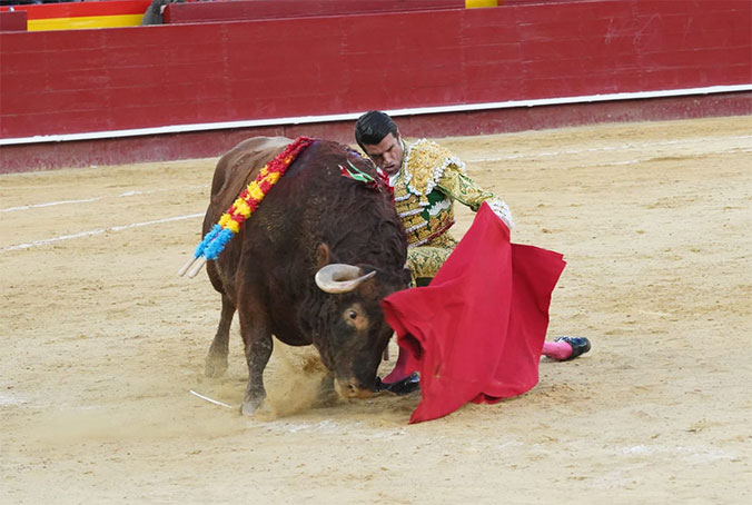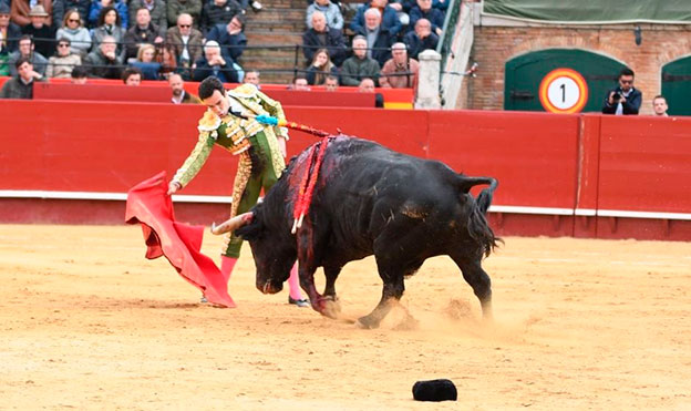 Emilio de Justo, que firmó una faena encajada y profunda, hizo lo mejor y cortó la única oreja de la función que cerró la feria de fallas.