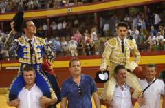 Roquetas de Mar. 23 de julio. Primera corrida de la Feria de Santa Ana. Lleno. Toros de Alcurrucén. Enrique Ponce, oreja, silencio. El Fandi, oreja y dos orejas. Alejandro Talavante, ovación y dos orejas.