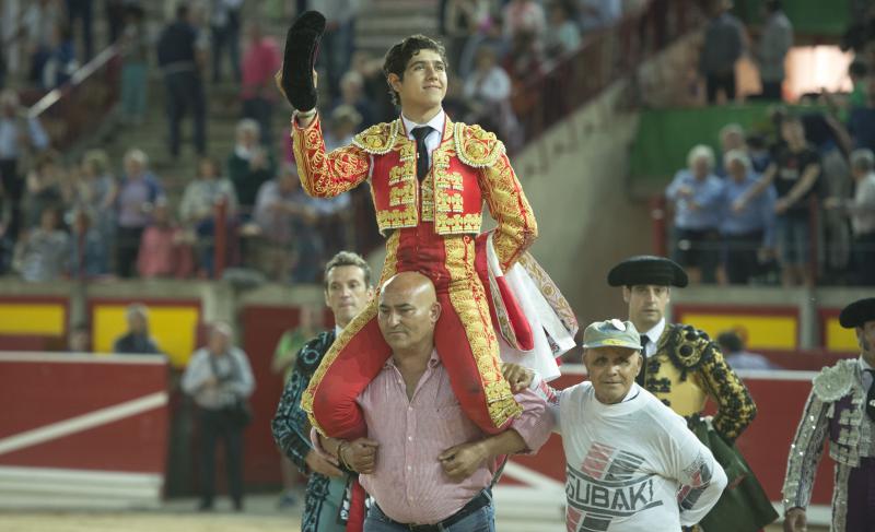 Pamplona, martes, 05 de julio de 2016. Primera de feria Novillos de El Parralejo bien presentados y de excelente juego en distintos grados de fuerza, escasa la de algunos salvo el sexto que fue el único deslucido del envío. Javier Marín (verde botella y oro): Pinchazo y media muy tendida, petición y vuelta al ruedo. Estocada, oreja. Luís David Adame (encarnado y oro): Estocada caída, oreja. Estoconazo, dos orejas. Salió en hombros. Andy Younes (lila y oro): Pinchazo, estocada y tres descabellos, palmas. Tres pinchazos, estocada y dos descabellos, silencio. Fernando Sánchez destacó en palos. José Antonio del Moral. Muy feliz, entretenido y triunfal el aperitivo de esta feria que anuncia grandes novedades como viene ocurriendo en los ciclos precedentes. Salvo el deslucido sexto novillo de El Parralejo, el envío resultó a pedir de boca con varios ejemplares ideales para el toreo. Los tres jóvenes espadas tuvieron oportunidad de mostrar sus tiernas habilidades aunque la distinta suerte con la espada limitó el triunfo de uno de ellos. Sobre todo del más nuevo francés, Andy Younes, que mostró poseer clase en su naturalidad torera. Cada vez que veo a un torero que no se dobla por la cintura echo las campanas al vuelo. Y este Andy es de los que torean derecho. Y con una naturalidad sensacional. Habrá que esperarle y verle más. Fue una pena que con la espada aún carece de la contundencia debida. Pero los otros dos más veteranos, cortaron orejas. Tres nada menos el más …