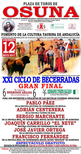 El próximo viernes 12 de mayo tendrá lugar la final del XXI Ciclo de Becerradas en clase práctica de la Asociación Andaluza de Escuelas Taurinas “Pedro Romero”.