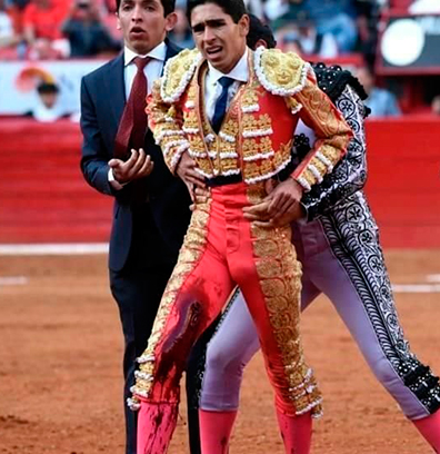 El diestro mejicano fue cogido por el tercer toro de la tarde. En el hospital, según reza el parte médico, fue operado de una herida ‘por cuerno de toro en la cara interna del tercio medio del muslo derecho con dos trayectorias. Una hacia arriba de 25 centímetros siguiendo sobre canal de Hunter. Lesionando el músculo vasto medial y afluente de la vena femoral superficial en su tercio medio. Respeta la vena y arterial femoral superficial disecándola en su trayecto.