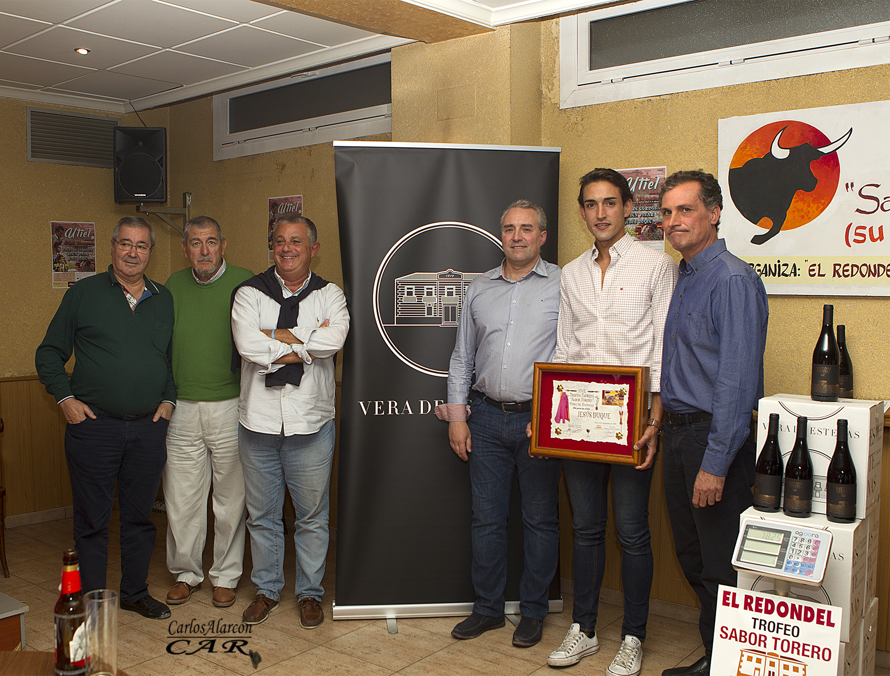 El matador de toros de Requena Jesus Duque, triunfador de la corrida de ayer en Utiel, fue distinguido con el XVII trofeo taurino “Sabor torero Vera de Estenas”, su peso en vino. Se trata de un galardón instituido por la tertulia taurina “El Redondel” de Radio Utiel y patrocinado por Vera de Estenas Bodegas y Viñedos. En el mismo se premió a la faena de mayor sabor torero del festejo.
