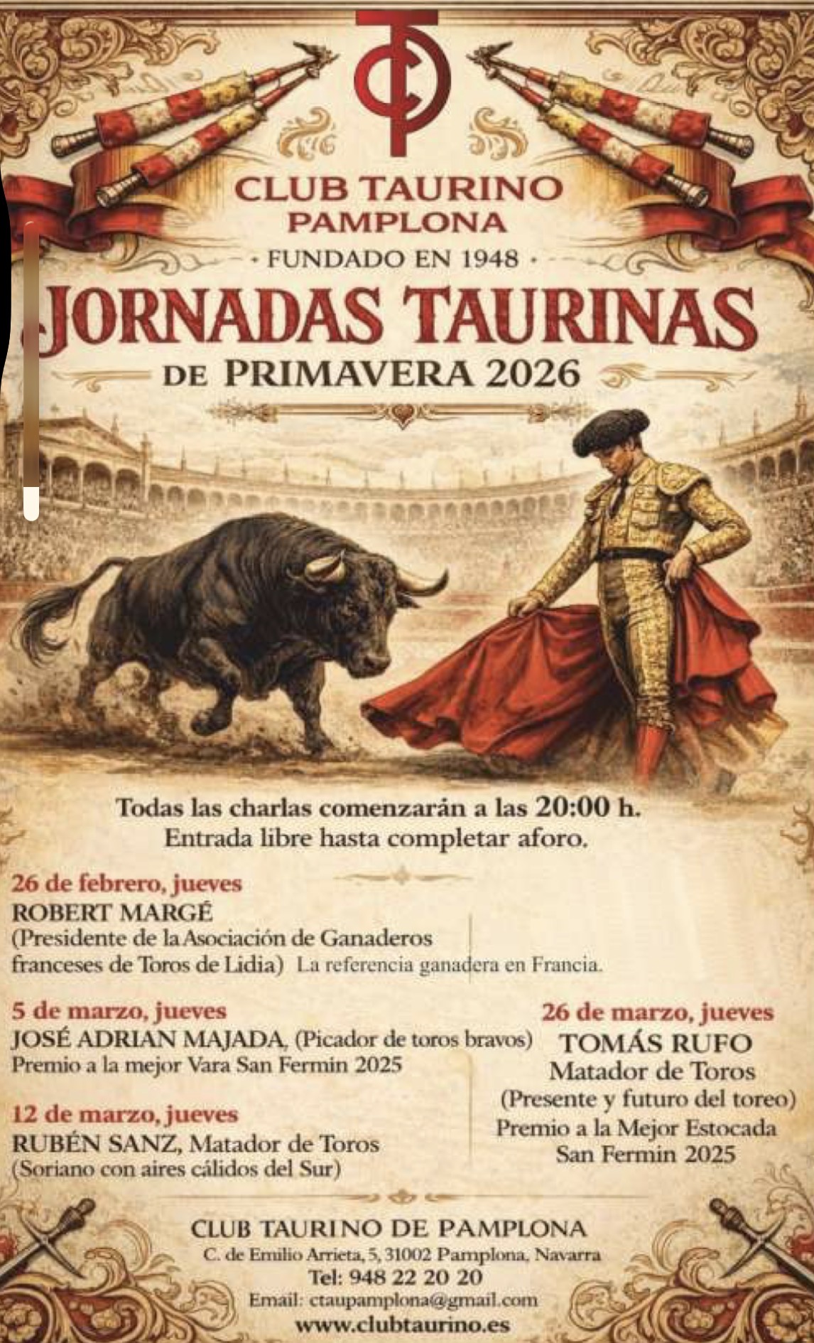 El Club Taurino de Pamplona ha hecho público el cartel de sus Jornadas Taurinas de Primavera