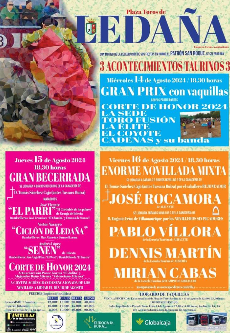 El rejoneador alicantino José Rocamora actuó el 15 de agosto en la conquense localidad de Ledaña,  cortando tres orejas.