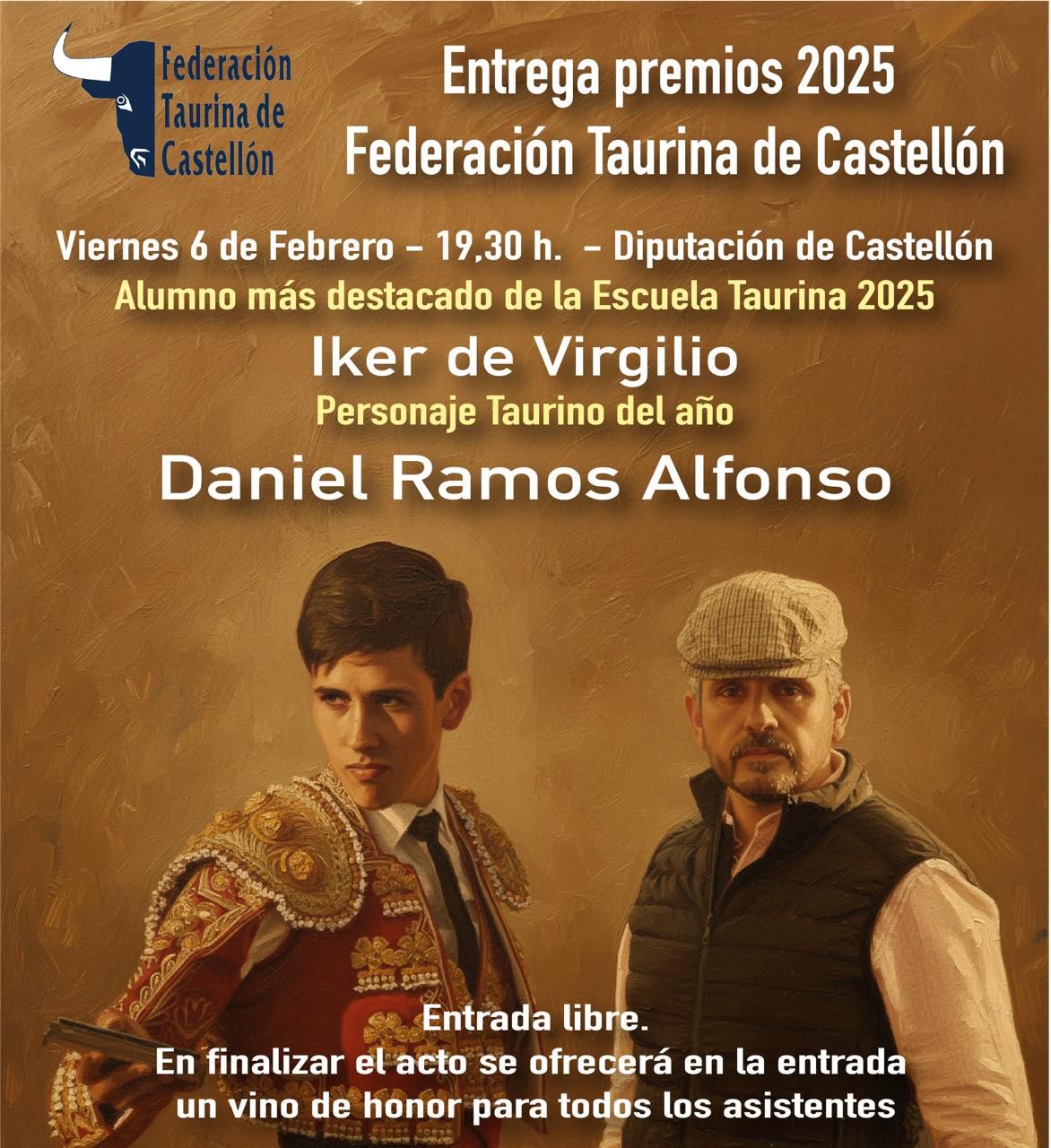 Esta tarde, a las siete y media, en la Diputación de Castellón, tendrá lugar la entrega de premios 2025 de la Federación Taurina de Castellón.